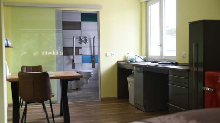Die Zimmer sind mit einem Flachbild-TV ausgestattet und verfügen über ein eigenes Badezimmer mit Dusche und Haartrockner. Zudem ist eine Küchenzeile vorhanden, die mit einem Kühlschrank, Geschirrspüler und Herdplatte ausgestattet ist.