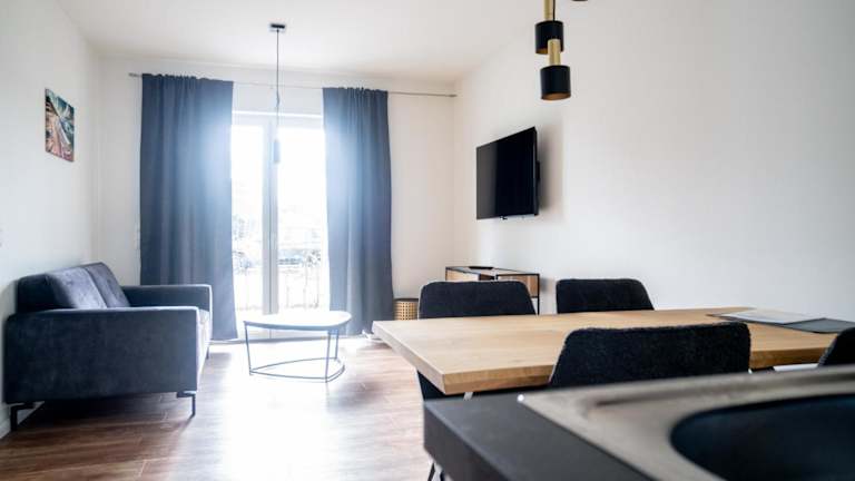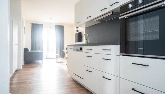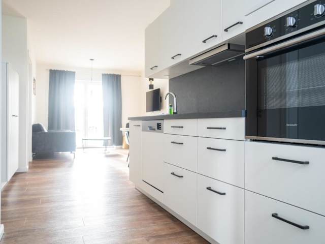 Die Ferienwohnung verfügt über zwei Schlafzimmer, einen Fernseher und eine voll ausgestattete Küche, die mit einem Kühlschrank und einem Geschirrspüler ausgestattet ist. Handtücher und Bettwäsche werden bereitgestellt.