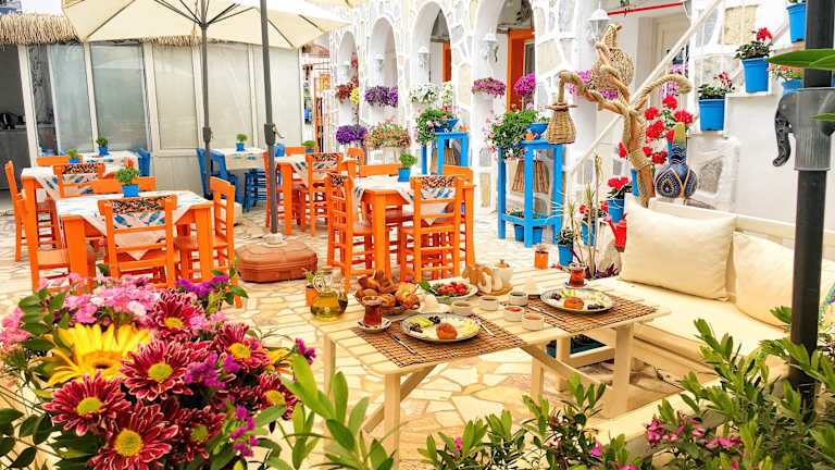 In der Bodrum Sade Pension erwartet Sie jeden Morgen ein reichhaltiges Frühstück im Stil der Ägäis. Bei schönem Wetter haben Sie die Möglichkeit, im Innenhof zu frühstücken und dabei die frische Luft zu genießen.