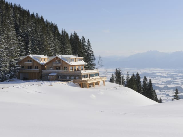 Nur eine Stunde hinter Augsburg, Ulm und München. Und zugleich so weit weg vom Alltag, dass der Atem ruhiger geht, die Muskeln locker lassen, die Gedanken klarer werden. Den Atem der Berge einfangen, der Natur einen Raum geben. In der neuen BergLodge hoch über Nesselwang im Allgäu genießen Sie alle Annehmlichkeiten eines modernen Hideaways - und sind doch auf eine wunderbare Art geerdet: Vier individuelle Lodges mit offenen Kaminen, eigener Sauna, gemütlichen Schlafzimmern und Wohnräumen mit großen Panoramafenstern und viel, viel Platz. Alle Räume wurden aus kostbarem Zirbenholz massiv gefertig - eine Wohltat für das Auge, die Nase und die Seele. Das köstliche Frühstück wird in Ihrer eigenen Lodge serviert und auch am Abend genießen Sie die frische Allgäuer Küche in Ihrem Refugium. Wann sehen wir uns auf der Alpspitze? Herzlich Willkommen.