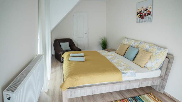 Das klimatisierte Apartment im Boglárka Apartman verfügt über ein Schlafzimmer und ein Wohnzimmer, die für einen angenehmen Aufenthalt sorgen. Die voll ausgestattete Küche mit Kühlschrank und Kaffeemaschine bietet die Möglichkeit, Mahlzeiten zuzubereiten. Das Apartment verfügt auch über ein Badezimmer mit Dusche und Haartrockner. Handtücher und Bettwäsche werden gestellt, um den Gästen einen komfortablen Aufenthalt zu ermöglichen.