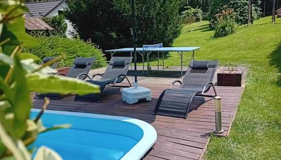 In der Nähe des Ferienhauses gibt es viele Möglichkeiten für Outdoor-Aktivitäten wie Radfahren. Die Umgebung bietet schöne Landschaften und Wege, die erkundet werden können. Nach einem aktiven Tag können Sie am saisonalen Außenpool entspannen oder auf der Terrasse des Ferienhauses die Ruhe und Stille der Umgebung genießen.