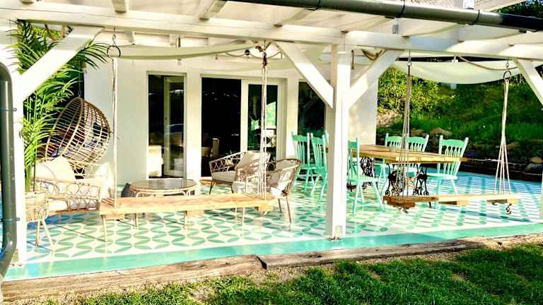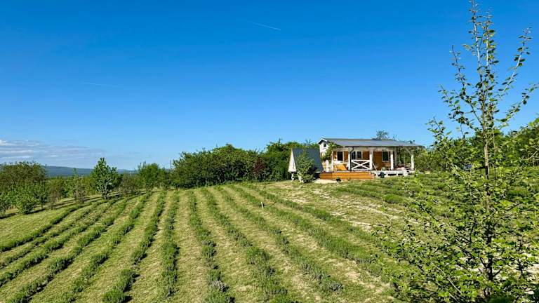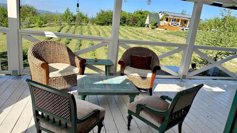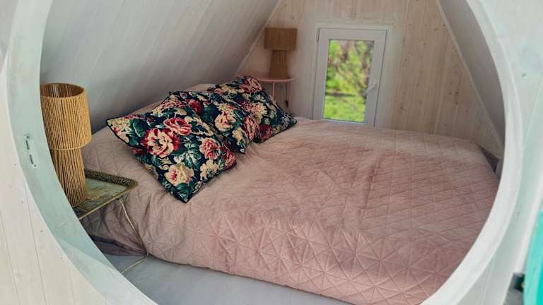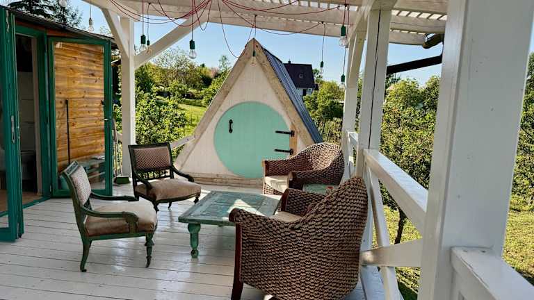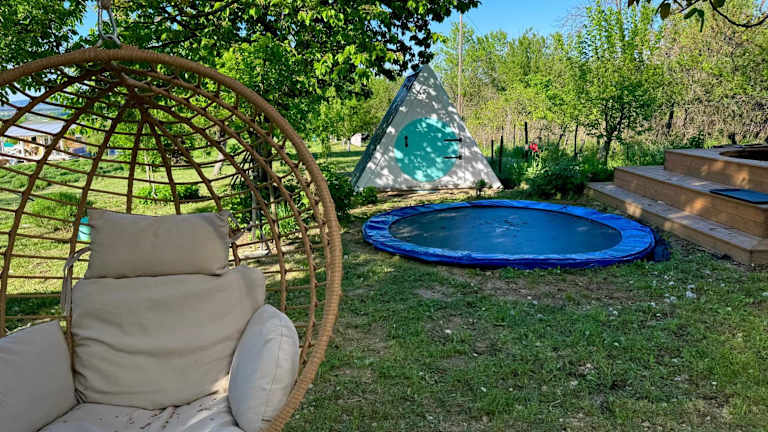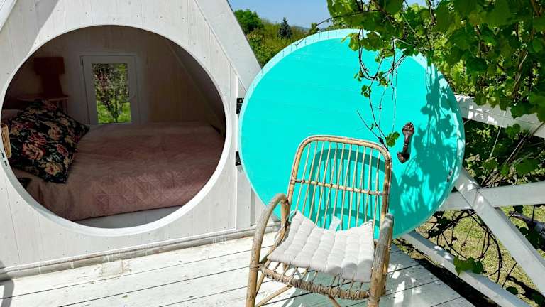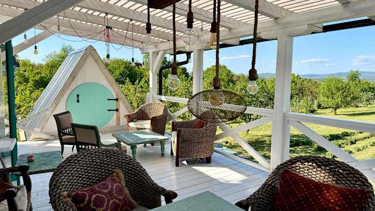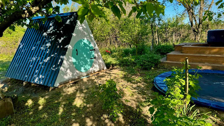 Die Bohemian Eco Lodge át Lake Balaton bietet Übernachtungsmöglichkeiten in einer naturnahen Umgebung. Die Lodge ermöglicht den Zugang zu einem Garten mit einer einladenden Terrasse und bietet Annehmlichkeiten wie Klimaanlage.