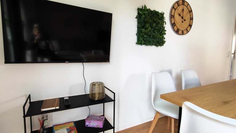 Die Ferienwohnung verfügt über drei Schlafzimmer und ein Badezimmer. Zur Ausstattung gehören Spitzen wie Bettwäsche, Handtücher, ein Flachbild-TV und ein Essbereich. Eine voll ausgestattete Küche und ein Balkon mit Stadtblick runden das Angebot ab.