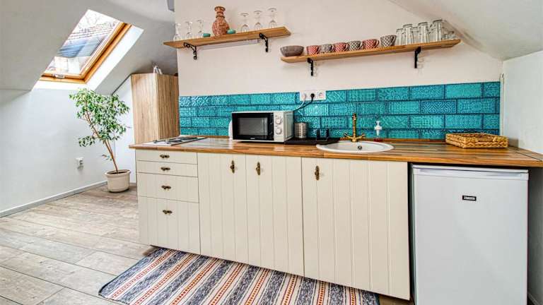 In der voll ausgestatteten Küche des Apartments können Sie Ihre eigenen Mahlzeiten zubereiten. Alternativ können Sie auch eines der Restaurants in der Nähe besuchen und die lokale Küche genießen. Eger bietet eine Vielzahl von gastronomischen Einrichtungen, in denen Sie traditionelle ungarische Gerichte und Weine probieren können.