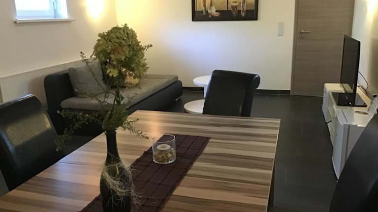 Die Ferienwohnung verfügt über 2 Schlafzimmer, ein Wohnzimmer mit Flachbild-TV, eine gut ausgestattete Küche mit Kühlschrank und Ofen sowie ein Badezimmer mit Dusche. Handtücher und Bettwäsche werden bereitgestellt, und die Wohnung bietet zudem eine Terrasse mit Gartenblick.