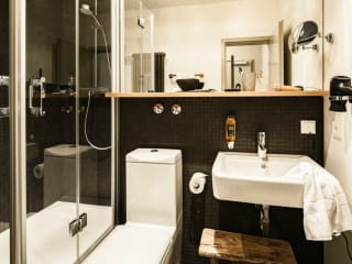 Bold Room (18-20 m²) In unseren Bold Rooms schaffen natürliche Materialien, urbane Töne und kuratierte Designer-Möbel eine echte Wohlfühlatmosphäre inmitten der Stadt. Die Zimmer sind moderne Rückzugsorte ohne Schnickschnack, ausgestattet mit einem Schreibtisch, einem Flat Screen TV, einem gemütlichen Doppelbett (160x200cm) sowie einer Reihe von ausgewählten Wohnaccessoires. Alle Bäder verfügen über eine Glasduschkabine, einen Kosmetikspiegel und einen Fön. Bold Studio with Balcony (18-20 m²) In unseren Bold Studios schaffen natürliche Materialien, urbane Töne und kuratierte Designer-Möbel eine echte Wohlfühlatmosphäre inmitten der Stadt. Die Apartments sind moderne Rückzugsorte ohne Schnickschnack, ausgestattet mit einer Kitchenette, einem Schreibtisch, einem Flat Screen TV, einem gemütlichen Doppelbett (160x200cm) sowie einer Reihe von ausgewählten Wohnaccessoires. Alle Bäder verfügen über eine Glasduschkabine, einen Kosmetikspiegel und einen Fön. Bold Rooftop Studio with Balcony (30 m²) In unseren Bold Rooftop Studios schaffen natürliche Materialien, urbane Töne und kuratierte Designer-Möbel eine echte Wohlfühlatmosphäre inmitten der Stadt. Auf 30 m² bieten Dir die Studios im 7. Stock alles, was Dein Herz begehrt – ein gemütliches Doppelbett (160x200cm), einen Wohnbereich, einen Flat Screen TV sowie eine voll ausgestattete Küche mit Mikrowelle, Espresso Maschine und Bar. Highlight des Rooftop Studios ist die großzügige Dachterrasse mit Blick bis in die Alpen. Alle Bäder verfügen über eine Glasduschkabine, einen Kosmetikspiegel und einen Fön.