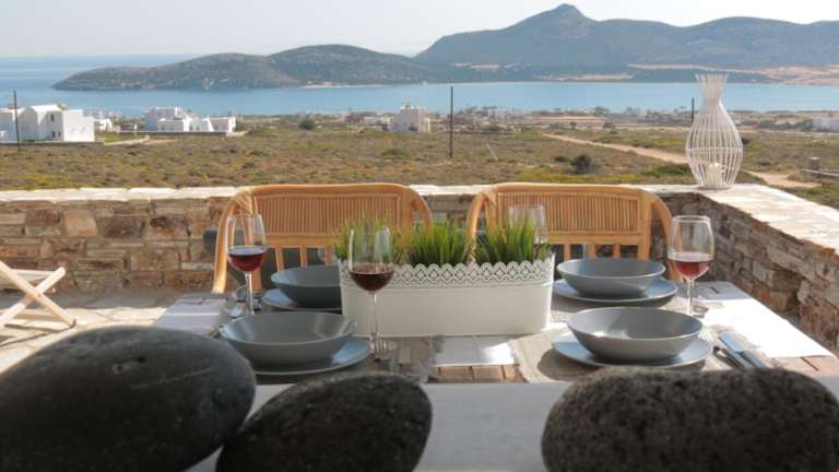 Im Bonatsa House können Sie die schöne möblierte Terrasse nutzen, um den Panoramablick auf die Ägäis zu genießen. Der Garten und die Terrasse bieten eine entspannte Atmosphäre, in der Sie sich zurücklehnen und die Natur genießen können.