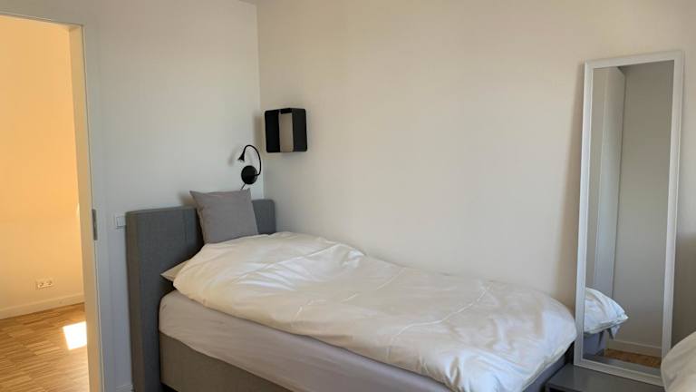 Die Ferienwohnung besteht aus zwei Schlafzimmern, einem Wohnzimmer und einer voll ausgestatteten Küche, die einen Kühlschrank und eine Kaffeemaschine enthält. Das Badezimmer ist mit einer Dusche und einem Haartrockner ausgestattet. Handtücher und Bettwäsche werden bereitgestellt.