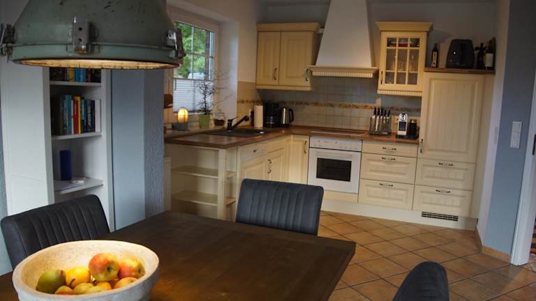 Die voll ausgestattete Küche der Unterkunft umfasst einen Kühlschrank, einen Geschirrspüler, eine Waschmaschine, einen Ofen sowie eine Herdplatte, jedoch sind keine weiteren Informationen zur Verpflegung vorhanden.
