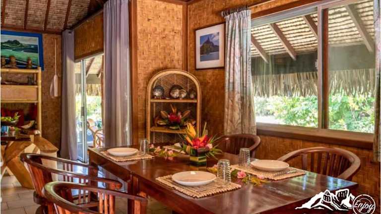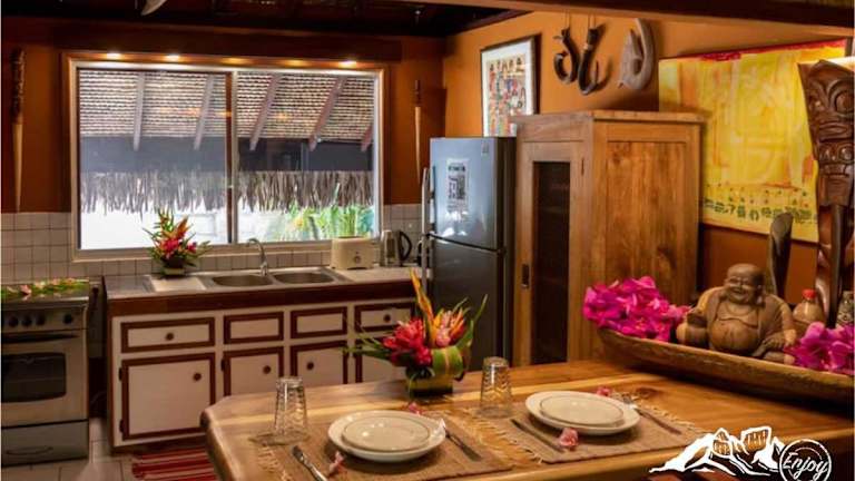 In der Villa Bora Bora - on Matira haben Sie die Möglichkeit, Ihre eigenen Mahlzeiten zuzubereiten, da die Villa über eine voll ausgestattete Küche verfügt. Alternativ können Sie auch die nahegelegenen Restaurants besuchen und die lokale Küche genießen. Probieren Sie die köstlichen Meeresfrüchtegerichte oder lassen Sie sich von den exotischen Aromen der polynesischen Küche verführen.