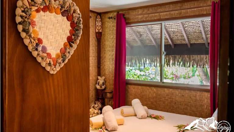 Die Villa Bora Bora - on Matira ist eine Strandunterkunft, die Ihnen einen traumhaften Aufenthalt in Bora Bora bietet. Mit ihrem Garten und der Terrasse genießen Sie einen herrlichen Blick auf die Umgebung. Die Villa verfügt über zwei Schlafzimmer, ein Wohnzimmer, eine voll ausgestattete Küche und ein Badezimmer. Kostenloses WLAN und Privatparkplätze stehen Ihnen ebenfalls zur Verfügung. Die Villa befindet sich nur wenige Schritte vom Strand Matira und 1,6 km vom Strand Maitai Polynesia Bora Bora entfernt.