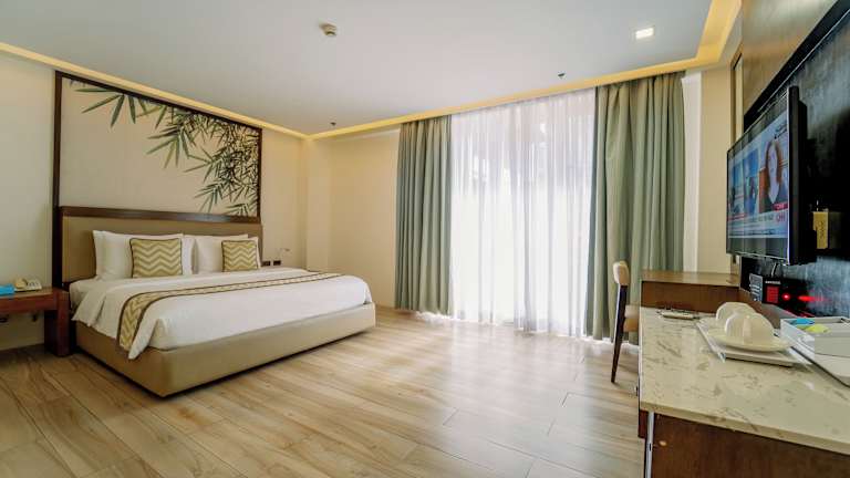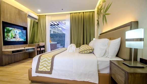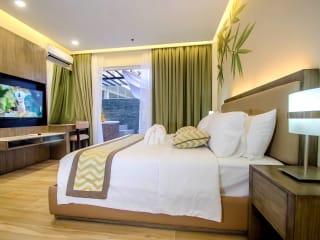 Die Zimmer im Boracay Haven Suites sind klimatisiert und verfügen über einen eigenen Balkon mit Aussicht. Zur Ausstattung gehören ein Flachbild-TV, eine Minibar und ein Wasserkocher. Jedes Zimmer verfügt über ein eigenes Bad mit Dusche, Badewanne, Whirlwanne und Bidet. Haartrockner, Hausschuhe und Kosmetikartikel sind ebenfalls vorhanden.