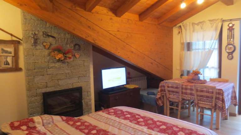Das Apartment im Borgo Alpino Chalet 4 verfügt über ein komfortables Schlafzimmer, in dem Sie sich nach einem ereignisreichen Tag ausruhen können. Die voll ausgestattete Küche bietet alle Annehmlichkeiten, die Sie für die Zubereitung Ihrer eigenen Mahlzeiten benötigen. Der gemütliche Wohnbereich lädt zum Entspannen ein, während Sie Ihren Lieblingsfilm auf dem Flachbild-TV genießen. Das Badezimmer ist mit einem Bidet ausgestattet.