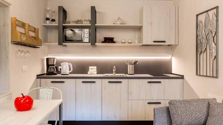 Das Ferienhaus besteht aus einem Schlafzimmer, einem Wohnzimmer und einer voll ausgestatteten Küche, die mit einem Kühlschrank und einem Wasserkocher ausgestattet ist. Zudem verfügt es über ein Badezimmer mit Dusche und kostenlosen Pflegeprodukten. Handtücher und Bettwäsche sind in der Unterkunft vorhanden.