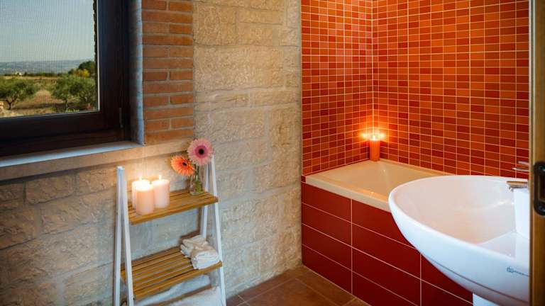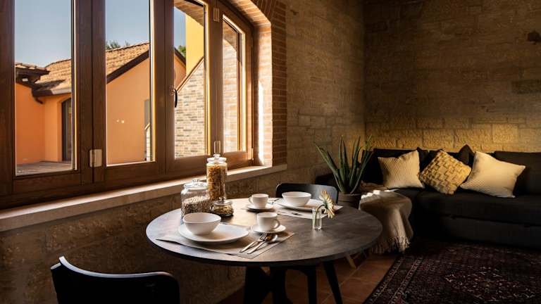 Die klimatisierten Unterkünfte im Hotel Borgo Olivo sind geräumig und bieten einen hohen Komfort für die Gäste. Jede Unterkunft verfügt über eine Terrasse oder einen Balkon, von dem aus Sie einen herrlichen Blick auf die Berge und den Pool genießen können. Der gemütliche Sitzbereich lädt zum Entspannen ein, während der Flachbild-Sat-TV für Unterhaltung sorgt. Die voll ausgestattete Küche bietet Ihnen die Möglichkeit, Ihre eigenen Mahlzeiten zuzubereiten. Das eigene Badezimmer ist mit einem Bidet und einem Haartrockner ausgestattet.