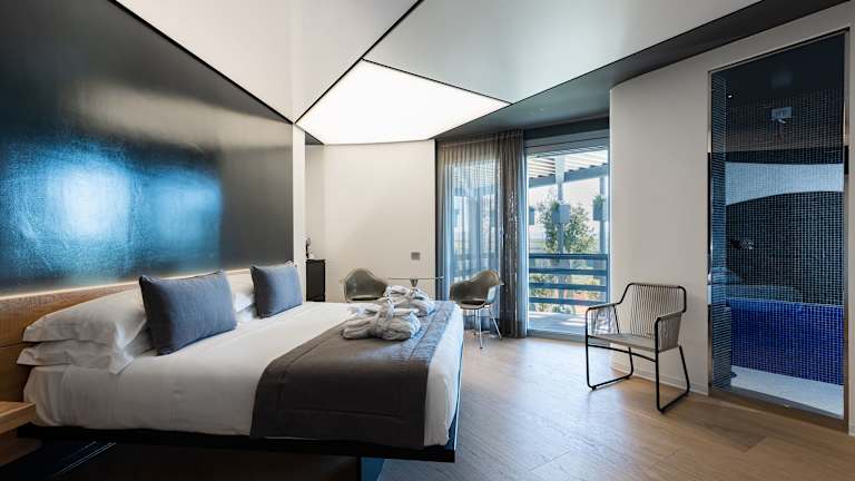 Das Resort verfügt über ein Restaurant, ein Café und eine Bar, die eine Auswahl an italienischer, mediterraner und internationaler Küche bieten. Tägliche Frühstücks- und Mittagsangebote sind verfügbar, einschließlich spezieller Diätgerichte auf Anfrage. Zudem sind milchfreie, vegane und glutenfreie Optionen erhältlich.