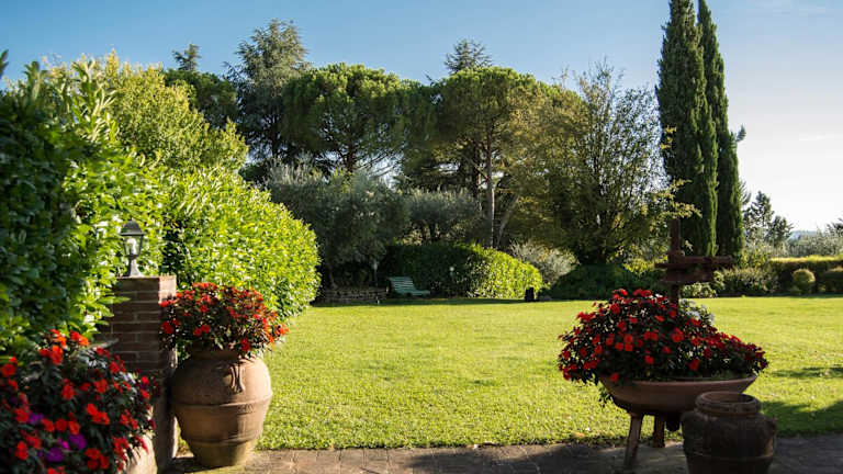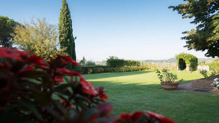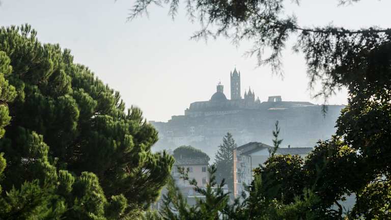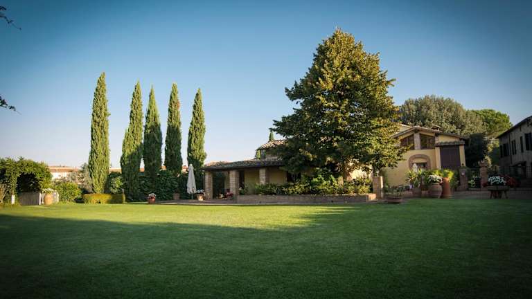 Das Borgo Villa Risi befindet sich in der malerischen Umgebung des Hügels von Poggio al Vento, mit Blick auf die Olivenhaine und den Dom zu Siena.