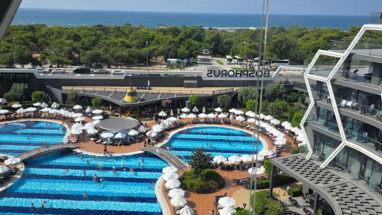 Das Bosphorus Sorgun Hotel bietet eine Vielzahl von Verpflegungsoptionen. Im Hauptrestaurant wird ein reichhaltiges Frühstücksbuffet serviert. Es gibt auch drei À-la-carte-Restaurants, in denen Sie chinesische, italienische und mediterrane Küche genießen können. An den verschiedenen Bars, einschließlich der Strandbar und der Poolbar, können Sie erfrischende Getränke und Snacks zu sich nehmen.