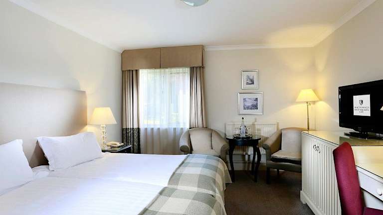 Die Zimmer sind mit Teppichböden ausgestattet und verfügen über individuell steuerbare Heizung, ein Badezimmer mit Dusche und Badewanne sowie Haartrockner. Zur weiteren Ausstattung gehören ein Doppelbett oder ein Queensize-Bett, Safe, Minibar, Schreibtisch, Telefon, TV mit Satellitenempfang, Radio und kostenfreies WLAN. Familienzimmer und rollstuhlgerechte Zimmer sind auf Anfrage verfügbar.