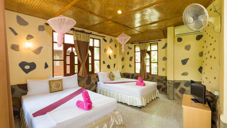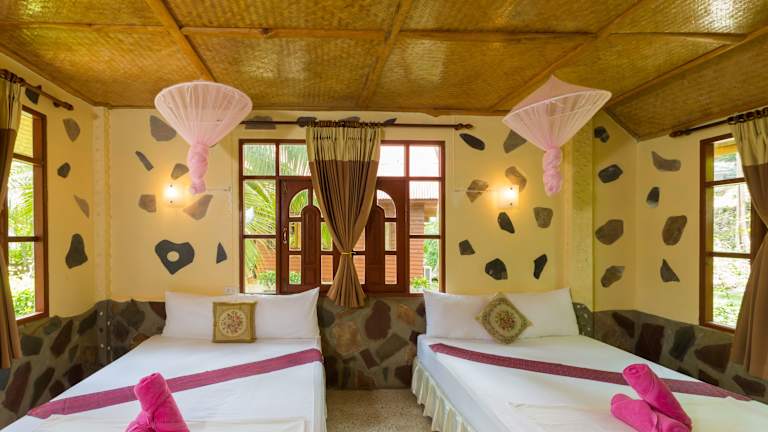 Das Bottle Beach 1 Resort bietet eine Auswahl an komfortablen Bungalows mit eigenem Bad. Sie können zwischen Bungalows mit Ventilator oder Klimaanlage wählen. Jeder Bungalow verfügt über einen eigenen Balkon und ein eigenes Bad mit Dusche. Die Unterkünfte sind gemütlich und bieten Ihnen alles, was Sie für einen angenehmen Aufenthalt benötigen.