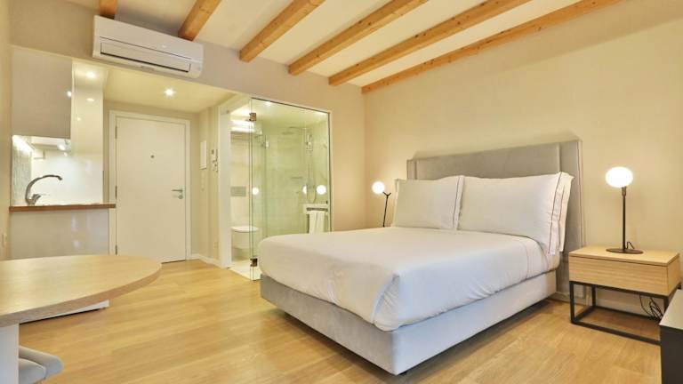 Die Wohneinheiten sind mit Parkettböden ausgestattet und bieten eine voll ausgestattete Küchenzeile, die einen Kühlschrank beinhaltet. Des Weiteren verfügen die Studios über einen Essbereich, einen Flachbild-TV mit Kabelkanälen und ein eigenes Badezimmer mit Dusche sowie kostenlosen Pflegeprodukten.