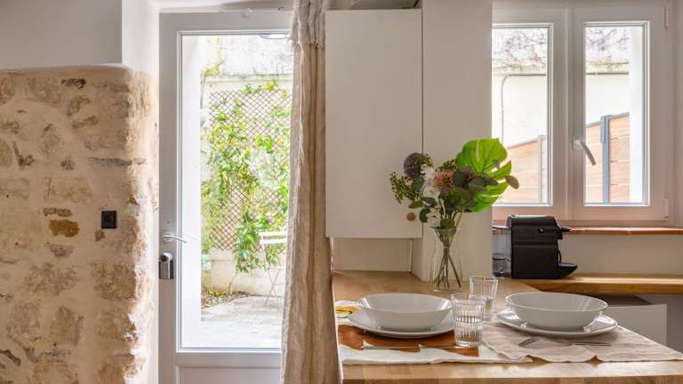 Boutik Boheme Le jardin Montmartre ist eine Ferienwohnung mit modernen Annehmlichkeiten und ist in einer ruhigen Lage mit Zugang zum Garten. Die Unterkunft bietet kostenloses WLAN und eine Veranda / Patio für entspannte Stunden.