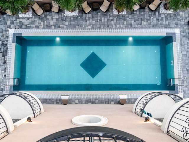 Die Apartments sind mit einer komplett ausgestatteten Küchenzeile und einem Essbereich ausgestattet und bieten Platz für einen angenehmen Aufenthalt. Die Bäder sind mit Duschen, Haartrocknern und kostenfreien Pflegeprodukten ausgestattet, wobei einige Apartments Meerblick und andere Poolblick bieten.
