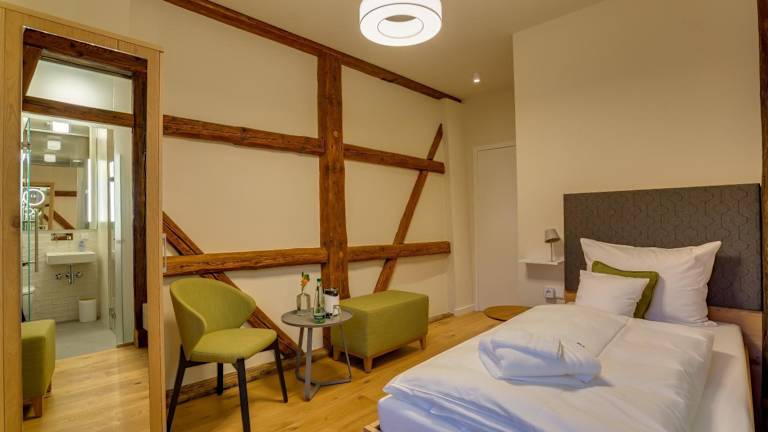 Die Zimmer im Boutique Hotel grüner Zweig sind modern und komfortabel eingerichtet. Jedes Zimmer verfügt über ein eigenes Bad, einen Schreibtisch, einen Flachbild-TV, Bettwäsche und Handtücher. Zur Ausstattung gehören auch ein Kleiderschrank und ein Wasserkocher.