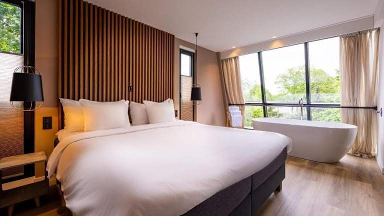 Das Hotel de Sterrenberg - Adults Only befindet sich in einer erstklassigen Lage, nur 450 m vom Eingang des Nationalparks Hoge Veluwe entfernt. Diese wunderschöne Naturlandschaft bietet zahlreiche Wander- und Fahrradwege, die Sie erkunden können. Das berühmte Kröller-Müller Museum, das für seine beeindruckende Sammlung von Van Gogh Gemälden bekannt ist, liegt ebenfalls nur 2,5 km vom Hotel entfernt. Mit dem Auto erreichen Sie die Stadt Arnheim in nur 30 Minuten.