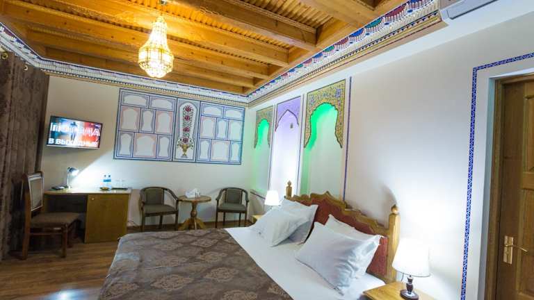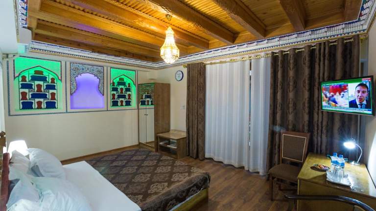 Das Boutique Safiya in Buchara ist die perfekte Wahl für Reisende, die eine komfortable und stilvolle Unterkunft suchen. Mit einer 24-Stunden-Rezeption, Flughafentransfers und kostenfreiem WLAN bietet das Hotel erstklassigen Service. Die klimatisierten Zimmer sind modern eingerichtet und verfügen über ein eigenes Bad und einen Flachbild-TV. Einige Zimmer bieten zudem eine Terrasse mit Blick auf die Umgebung. Beginnen Sie Ihren Tag mit einem leckeren vegetarischen oder Halal-Frühstück. Der internationale Flughafen Buchara ist nur 5 km entfernt.