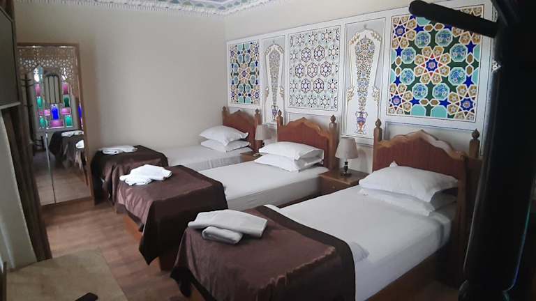 Das Boutique Safiya befindet sich in Buchara, einer historischen Stadt mit einer reichen kulturellen und architektonischen Geschichte. Die Unterkunft ist ideal gelegen und bietet einen einfachen Zugang zu den wichtigsten Sehenswürdigkeiten der Stadt. Entdecken Sie die prächtigen Moscheen, Medresen und Paläste, die das Erbe der Stadt ausmachen. Der internationale Flughafen Buchara ist nur eine kurze Autofahrt entfernt, was die Anreise zum Hotel sehr bequem macht.