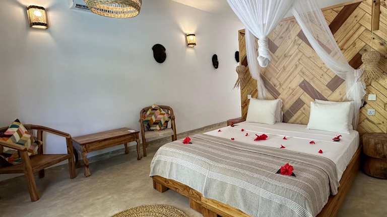 Die Zimmer in der Boutique Villa Unaweza sind komfortabel und stilvoll eingerichtet. Jedes Zimmer verfügt über einen eigenen Balkon mit Blick auf den Pool. Zur Ausstattung gehören auch eine Klimaanlage und kostenfreies WLAN. Ein Kühlschrank steht ebenfalls zur Verfügung, um Ihre Getränke kühl zu halten. Das private Badezimmer bietet Komfort und Annehmlichkeiten während Ihres Aufenthalts.