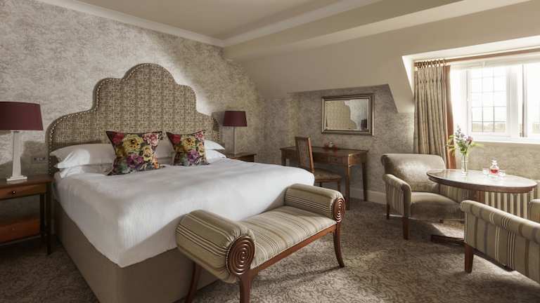 Das historische Bovey Castle erstreckt sich über drei Etagen und bietet insgesamt 64 Zimmer. Einige der Zimmer bieten einen herrlichen Blick auf die umliegende Landschaft. Alle Zimmer sind komfortabel eingerichtet und verfügen über Kaffee- und Teezubehör sowie einen TV. Hier finden Sie alles, was Sie für einen angenehmen Aufenthalt benötigen.