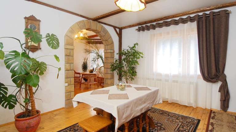 Das Bozhena Hotel befindet sich in einer ruhigen Gegend von Mykulychyn, in der Nähe des Flusses Prutets und umgeben von malerischem Wald. Die Lage ermöglicht es den Gästen, die Schönheit der Natur zu genießen und gleichzeitig eine entspannte Atmosphäre zu erleben. Das Skigebiet Bukovel ist nur 16 km entfernt, der Bahnhof Mykulychyn ist 2 km entfernt und der Flughafen Ivano-Frankivsk ist 66 km entfernt.