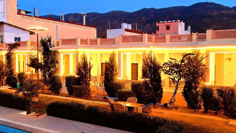 Das Brahma Heritage-Pool with Nature in Pushkar bietet eine idyllische Unterkunft mit einem Außenpool, umgeben von einem schönen Garten und einer Terrasse. Die Lage ist ideal, da beliebte Sehenswürdigkeiten wie der Varaha-Tempel und der Pushkar-See in der Nähe liegen. Die Zimmer sind komfortabel eingerichtet und verfügen über Annehmlichkeiten wie Klimaanlage, Sat-TV und ein eigenes Bad. Das Hotel bietet zudem einen Zimmerservice, eine 24-Stunden-Rezeption und einen Geldwechsel. Genießen Sie im hoteleigenen Restaurant eine Auswahl an köstlichen Gerichten aus der chinesischen, griechischen und indischen Küche. Ein kontinentales oder vegetarisches Frühstück wird ebenfalls angeboten. Die Unterkunft ist auch ein idealer Ausgangspunkt für Fahrradtouren in der Umgebung.