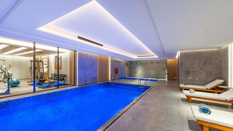 Das Hotel bietet ein Fitnesscenter, einen Innenpool sowie eine Sauna für sportliche Aktivitäten und Entspannung.