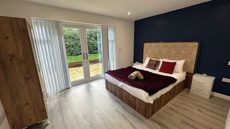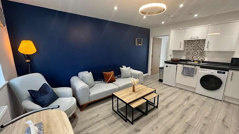 Die Unterkunft ist ein neugebauter Bungalow mit einem Schlafzimmer und verfügt über Front- und Hintergärten. Es handelt sich um eine Ferienwohnung, die in 2023 erbaut wurde.