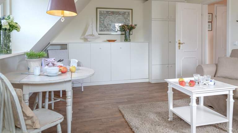 Die Ferienwohnung beinhaltet ein Schlafzimmer, ein Wohnzimmer sowie eine gut ausgestattete Küche, die mit einem Kühlschrank und einer Herdplatte bestückt ist. Für den Aufenthalt werden Handtücher und Bettwäsche bereitgestellt.