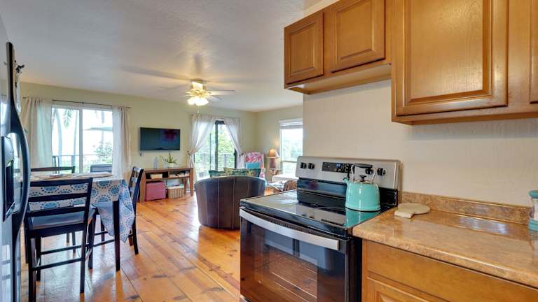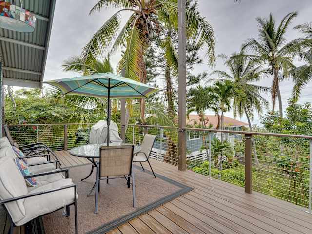 Der Breezy Kailua-Kona Bungalow mit Lanai und Meerblick bietet Platz für bis zu 4 Personen und verfügt über 2 gemütliche Schlafzimmer. Die Küche ist mit einem Kühlschrank und einem Backofen ausgestattet, so dass Sie Ihre eigenen Mahlzeiten zubereiten können. Eine Waschmaschine steht ebenfalls zur Verfügung, um Ihren Aufenthalt so bequem wie möglich zu gestalten. Das Badezimmer ist mit kostenfreien Pflegeprodukten ausgestattet und Handtücher und Bettwäsche werden gestellt.