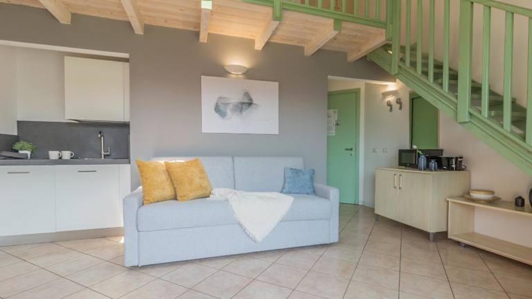 Willkommen bei Brezza del Lario, einem kleinen Rückzugsort mit Blick auf den Comer See, wo die Ruhe der Natur auf den Komfort eines modernen und gepflegten Ambientes trifft. Unser Studio-Apartment mit Balkon ist die ideale Wahl für alle, die eine romantische Auszeit oder eine erholsame Pause an einem der stimmungsvollsten Orte Italiens suchen. Jeden Tag werden Sie vom Anblick des Sees, der sich vor Ihnen ausbreitet und von Bergen umrahmt wird, verzaubert. Der private Balkon ist perfekt für Frühstück im Freien, Momente der Entspannung oder einen Toast bei Sonnenuntergang. Komfort und Stil in einem Raum: Das Apartment ist modern eingerichtet, mit neutralen Tönen und klaren Linien. Der Raum wurde so gestaltet, dass er Funktionalität und Wohlbefinden bietet: Sie finden eine Küche mit Kühlschrank, Induktionskochfeld, Mikrowelle, Wasserkocher, Toaster und allem, was Sie brauchen, um wie zu Hause zu kochen. Der Wohnbereich wird durch ein bequemes Doppelschlafsofa und ein voll ausgestattetes Badezimmer mit Dusche, Waschbecken, Bidet und WC ergänzt. Auf dem Zwischengeschoss befindet sich das Schlafzimmer mit einem Doppelbett. Das Studio-Apartment ist Teil einer gepflegten Residenz mit nur 34 Wohnungen, ausgestattet mit einer Panorama-Sonnenterrasse und einem gemeinschaftlichen Garten – ideal, um die Sonne zu genießen, ein Buch zu lesen oder sich einfach von der Brise des Sees tragen zu lassen. Brezza del Lario liegt nur wenige Meter vom stimmungsvollen Sentiero del Viandante entfernt – perfekt für Wanderungen, Fotografie und authentische Natur – sowie vom Anschluss der SS36, einer idealen Lage, um den See, das Veltlin und die malerischen Dörfer in der Umgebung zu erkunden. Das Zentrum von Dervio ist ebenfalls zu Fuß erreichbar und bietet Supermärkte, Bars, Restaurants und einen großen kostenlosen Strand, an dem Sie entspannen oder Wassersport treiben können. Ob für einen romantischen Kurzurlaub, einen Familienurlaub oder einen erholsamen Aufenthalt – Brezza del Lario erwartet Sie mit einer einzigartigen Mischung aus Ruhe, Natur und Komfort. Ob für ein romantisches Wochenende, eine Auszeit allein oder einen aktiven Natururlaub – das Studio-Apartment Brezza del Lario erwartet Sie, um Ihnen das Gefühl zu geben, wirklich woanders zu sein: nur einen Schritt vom See entfernt und weit weg von allen Gedanken. Brezza del Lario – Ihr Rückzugsort am Comer See