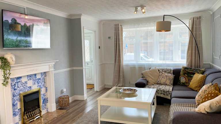 Die Bright, Airy & Beautifully Decorated 3 Bedroom Home bietet Übernachtungsmöglichkeiten in einem Ferienhaus, das sich durch eine helle und ansprechend dekorierte Atmosphäre auszeichnet. Zu den Annehmlichkeiten gehören kostenfreies WLAN und ein Flachbild-TV. Die Unterkunft verfügt zudem über einen Garten und kostenlose Privatparkplätze.