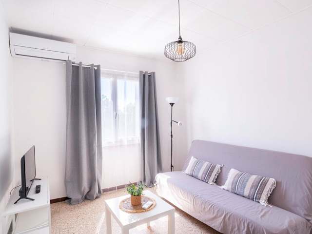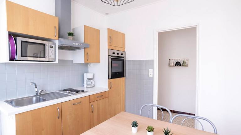 Das Apartment umfasst 1 Schlafzimmer, ein Wohnzimmer und eine voll ausgestattete Küche mit Kühlschrank und Kaffeemaschine. Zudem stehen ein Badezimmer mit Badewanne oder Dusche und Haartrockner zur Verfügung. Ein Fernseher und Klimaanlage sind ebenfalls vorhanden.