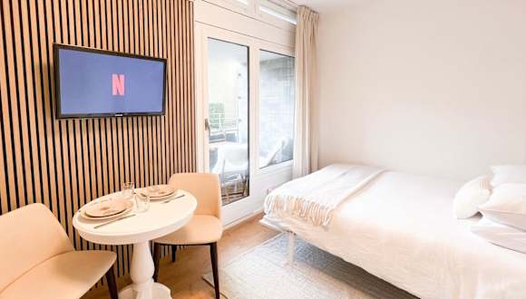 Das Bright Tiny Studio - Shared Pool & Sauna - Free Parking - Air condition bietet klimatisierte Übernachtungsmöglichkeiten mit einer Veranda oder einem Patio und kostenlosem WLAN. Es handelt sich um eine Ferienwohnung, die über einen eigenen Pool und einen Garten verfügt. Die Nutzung eines Innenpools und einer Sauna ist ebenfalls möglich, und den Gästen steht eine Sonnenterrasse zur Verfügung.