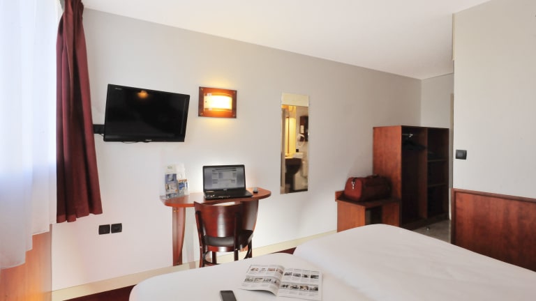Die Zimmer im Brit Hotel Rennes St Grégoire - Le Villeneuve sind modern eingerichtet und bieten allen Komfort für einen angenehmen Aufenthalt. Jedes Zimmer verfügt über einen Flachbild-TV, eine individuell regulierbare Heizung, einen Schreibtisch und ein eigenes Badezimmer mit Dusche und kostenfreien Pflegeprodukten. Die Zimmer sind auch rollstuhlgerecht und verfügen über barrierefreie Badezimmer.