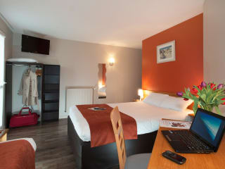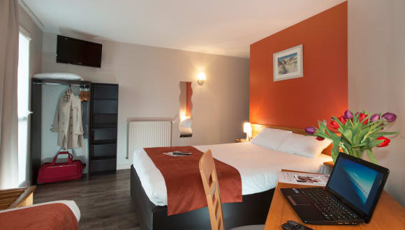 Die Zimmer im Brit Hotel Les Alizes sind gut ausgestattet und bieten modernen Komfort. Jedes Zimmer verfügt über Annehmlichkeiten wie ein bequemes Bett, einen Schreibtisch, einen Flachbildfernseher und kostenfreies WLAN. Die Badezimmer sind sauber und mit einer Dusche oder Badewanne ausgestattet. Einige Zimmer bieten auch einen Balkon oder eine Terrasse mit Blick auf die Umgebung.