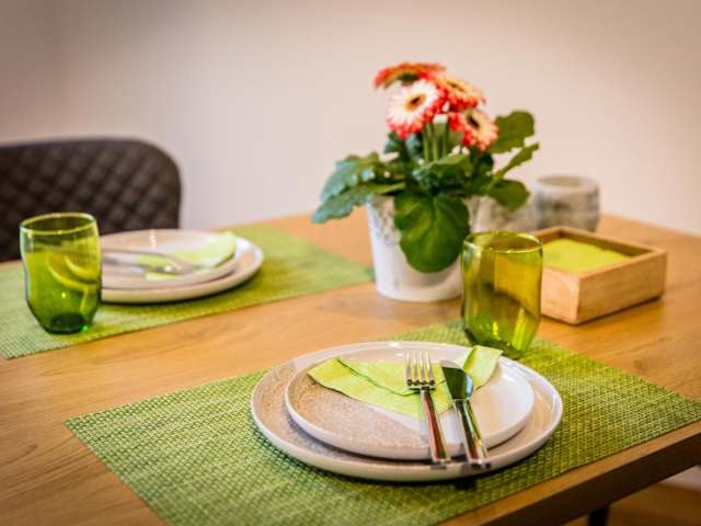 Die Ferienwohnung umfasst ein Schlafzimmer, ein Wohnzimmer, eine voll ausgestattete Küche mit Kühlschrank und Kaffeemaschine sowie ein Badezimmer mit Dusche und kostenlosen Pflegeprodukten. Zusätzlich werden Handtücher und Bettwäsche bereitgestellt. Die Unterkunft verfügt über Nichtraucherzimmer, Familienzimmer und Gartenmöbel.