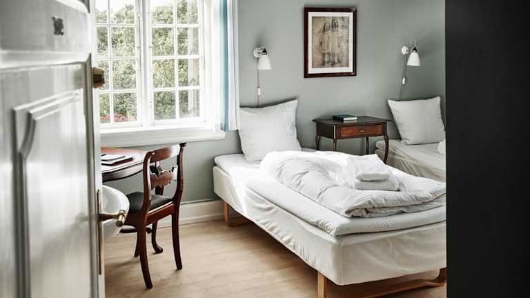 Die Zimmer im Brøndums Hotel sind hell und geschmackvoll eingerichtet. Sie befinden sich entweder im Hauptgebäude oder im Nebengebäude, Admiralgaarden. Die Zimmer verfügen entweder über ein eigenes Bad oder ein Gemeinschaftsbad. Wenn Sie ein Gemeinschaftsbad nutzen, finden Sie ein Waschbecken in Ihrem Zimmer. Die Einrichtung ist komfortabel und bietet alles, was Sie für einen angenehmen Aufenthalt benötigen.