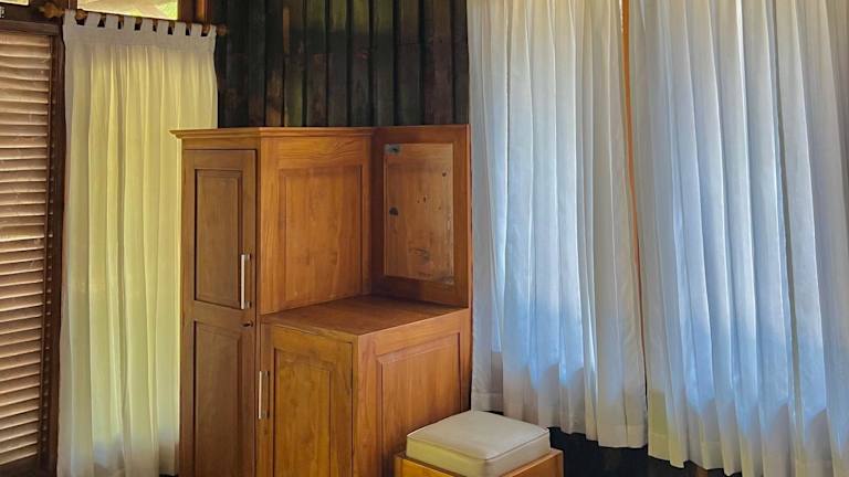 Die Zimmer in den Bronze Bungalows sind geschmackvoll eingerichtet und bieten eine Mischung aus traditionellem und modernem Dekor. Jedes Zimmer verfügt über einen Ventilator, einen Kleiderschrank und eine Terrasse, auf der Sie die frische Luft und die natürliche Umgebung genießen können. Die angrenzenden Badezimmer sind mit einer Dusche und Handtüchern ausgestattet. Einige der Unterkünfte bieten auch eine Warmwasserdusche für zusätzlichen Komfort. Ein kostenfreies WLAN steht in den öffentlichen Bereichen zur Verfügung.