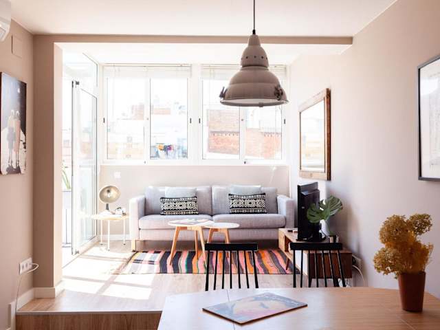 Brummell Apartments Poble Sec bietet eine voll ausgestattete Ferienwohnung mit Klimaanlage, die Ihnen eine Terrasse mit Stadtblick bietet. Die Unterkunft stellt kostenloses WLAN zur Verfügung und ist eine Nichtraucherunterkunft, die sowohl öffentliche als auch private Nichtraucherzonen umfasst. Es sind keine Feiern wie Junggesellenabschiede erlaubt und die Unterkunft stellt spezielle Anfragen zur Ankunftszeit zur Verfügung, die rechtzeitig kommuniziert werden müssen. Zudem ist ein Flughafentransfer gegen Gebühr verfügbar.